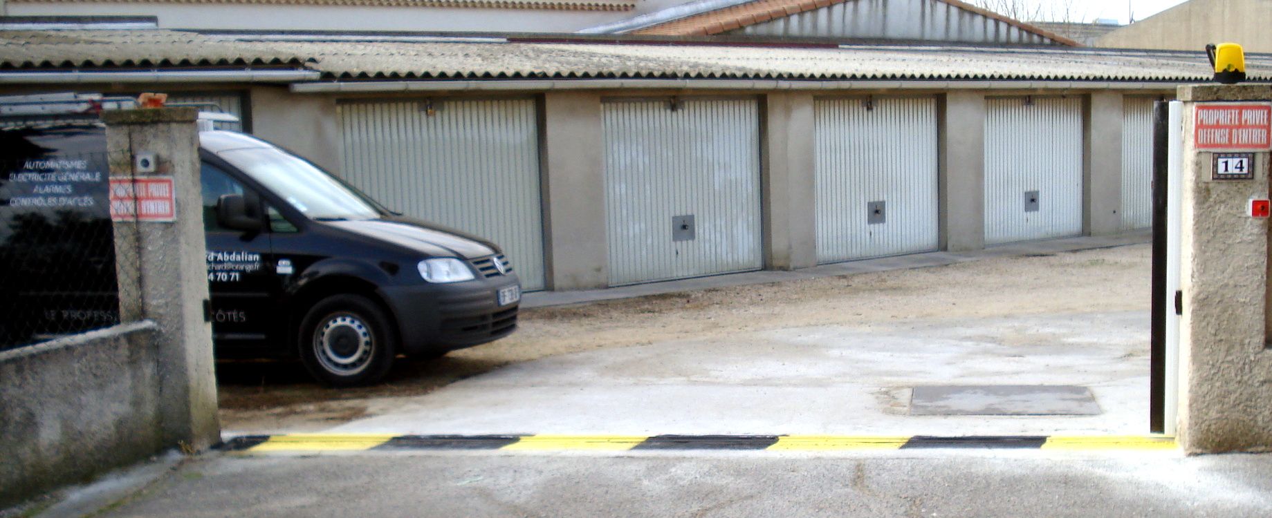 Il est composé de lames occultantes horizontales en aluminium. Ce portail équipe l'accès de box de garages à Berre l'Etang.